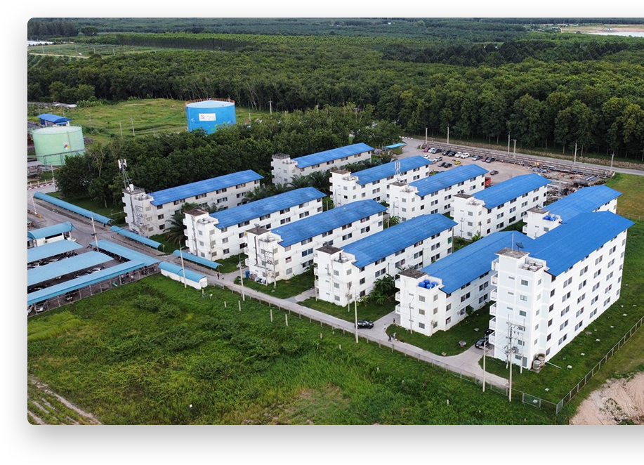พื้นที่ทั้งหมดที่เป็นเขตที่พักอาศัย สำหรับพนักงาน จำนวน 11 ตึก