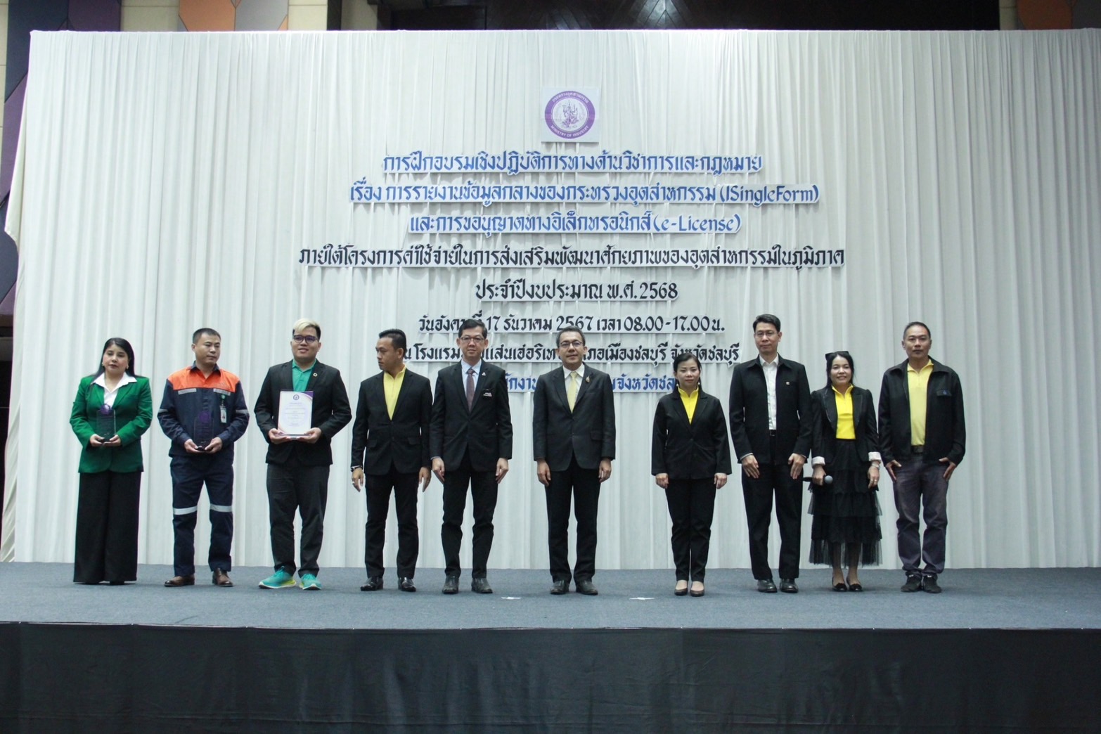 การฝึกอบรมเชิงปฏิบัติการทางด้านวิชาการและกฎหมาย เรื่อง การรายงานข้อมูลกลางของกระพรวงอุตสาหกรรม (SingleForm) และการขออนุญาตทางอิเล็กทรอนิกส์ (e-License) ภายใต้โครงการค่าใช้จ่ายในการส่งเสริมพัฒนาศักยภาพของอุตสาหกรรมในภูมิภาค ประจำปีงบประมาณ พ.ศ. 2568 ณ โรงแรมบางแสนเฮอริเทจ อำเภอเมืองชลบุรี จังหวัดชลบุรี