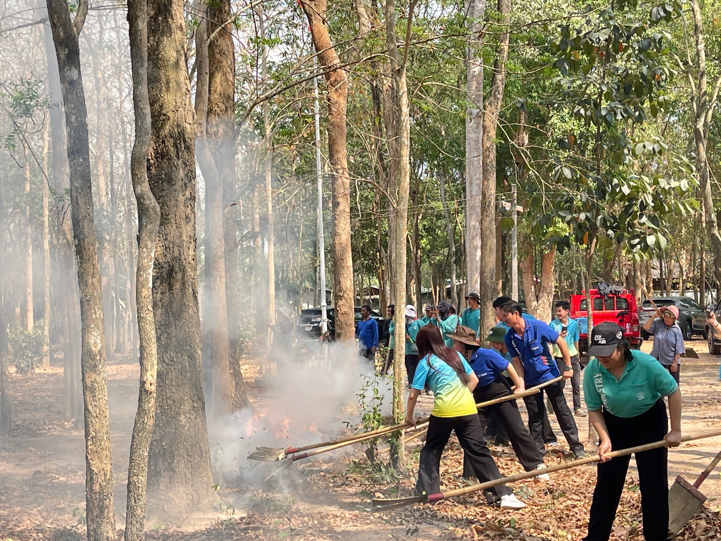 ในภาคบ่ายเป็นการลงพื้นที่ภาคสนาม ณ ฐานการปฏิบัติการป้องกันรักษาป่าที่ชลบุรี 2 ต.เขาซก อ.หนองใหญ่ จ.ชลบุรี ซึ่งผู้เข้าอบรมได้ฝึกปฎิบัติกับอุปกรณ์ดับไฟป่าจริง รวมถึงการเอาตัวรอดในภาวะฉุกเฉิน เพื่อให้ผู้เข้าร่วมได้สัมผัสประสบการณ์จริง ผู้เชี่ยวชาญได้จัดสถานการณ์จำลองการเกิดไฟป่าขึ้น โดยเน้นให้ผู้เข้าร่วมได้เรียนรู้การทำงานร่วมกันเป็นทีม การสื่อสารอย่างมีประสิทธิภาพในสถานการณ์วิกฤติ และการใช้เครื่องมือดับไฟป่าอย่างถูกวิธี นอกจากนี้ยังได้มีการฝึกการวางแผนเส้นทางหลบหนีในกรณีที่ไฟลุกลามอย่างรวดเร็ว