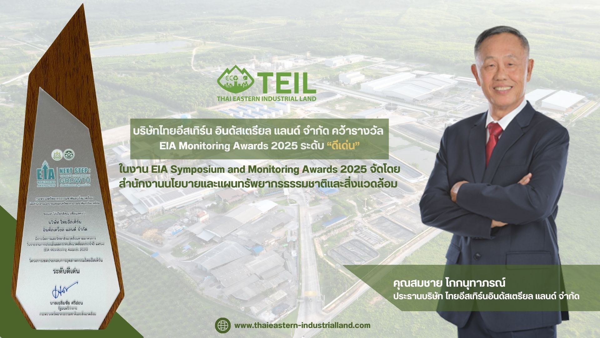 เมื่อวันที่ 17 กันยายน 2568 บริษัท ไทยอีสเทิร์น อินดัสเตรียล แลนด์ จำกัด ได้รับเกียรติรับรางวัลระดับ “ดีเด่น” ในงาน EIA Symposium and Monitoring Awards 2025 จัดโดยสำนักงานนโยบายและแผนทรัพยากรธรรมชาติและสิ่งแวดล้อม (สผ.) เพื่อเชิดชูเกียรติสถานประกอบการที่มีการปฏิบัติตามมาตรการรายงานการประเมินผลกระทบสิ่งแวดล้อม (EIA) อย่างมีประสิทธิภาพ